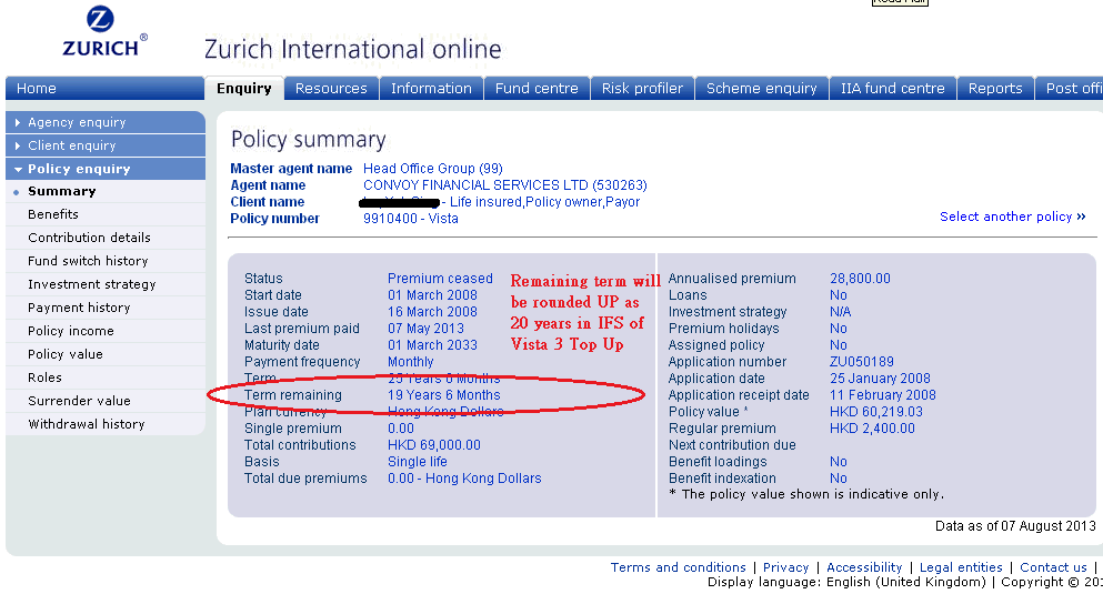 Please kindly refer to the below ZIO dump screen showing the remaining term. (Updated: 7 Aug 2013)